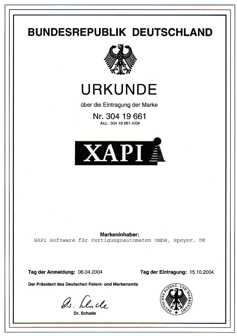 Die XAPI Software für Fertigungsautomation GmbH übernahm am 02.01.2006 alle Geschäftsaktivitäten der SAPI Software für Fertigungsautomation GmbH unter verändertem Markennamen. Das Unternehmenskonzept und der Personalstand blieb beim altbewährten. Natürlich stellt sich die Frage, warum das alles? Sie kennen die mächtige Walldorfer Softwareschmiede? Dieses Unternehmen verfügt über einen Pool von Advokaten, die im Prozessieren um Namensrechte unschlagbar sind.